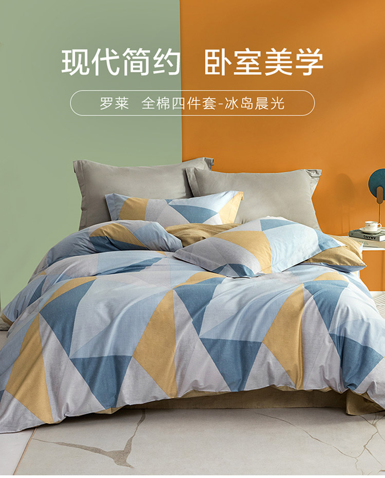 罗莱家纺纯棉床上四件套夏季床单被套床品套件 蓝色1.5米床200*230
